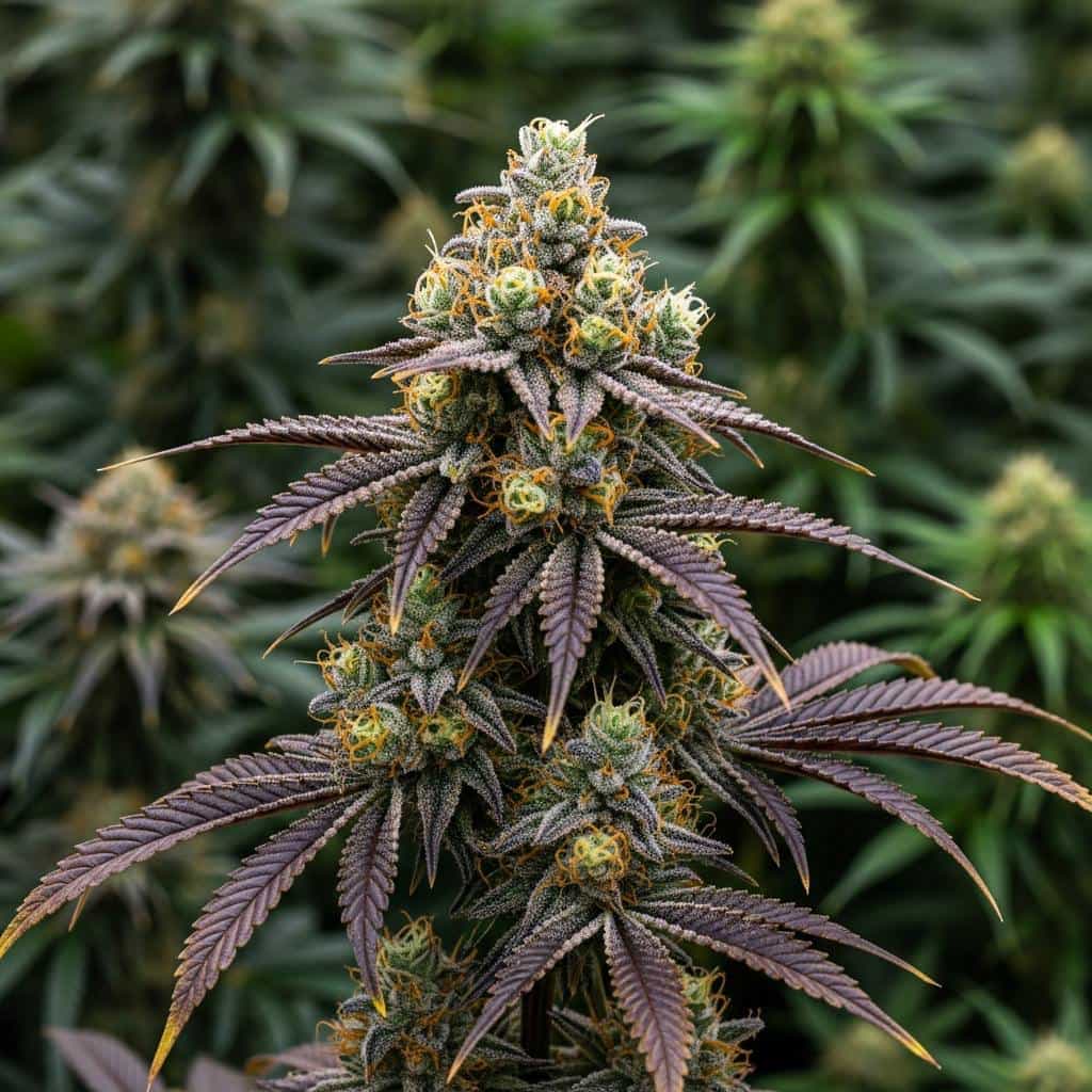 В составе соцветий эксперты обнаружили терпены линалоол, мирцен, кариофиллен. Помимо яркой окраски, сорт фиолетовой конопли Авто Блек Опиум от Дивайн Сидс впечатляет удачным соотношением высоты и массы, высокой концентрацией терпенов / смол и стойким характером.